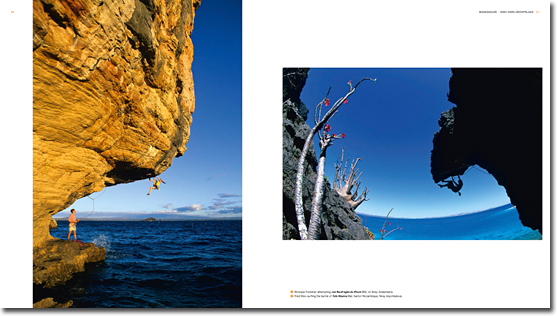 A visual feast, Rock Odyssey takes us on a breathtaking voyage stopping at sixteen exceptional rock climbing destinations. From the wild interior of Madagascar, Simon Carter gives us an eagles view high up on the Tsaranoro Massif. Off the coast of Vietnam, he explores limestone karsts jutting from the glistening emerald-green waters of Ha Long Bay. In North America he seemingly employs wizardry to reveal Devils Tower’s geometric multi-faceted columns from unseen perspectives. Over on the Greek isle of Kalymnos, he navigates us through the bewildering three-dimensional tufa jungles. And bringing it back home, Carter presents the giddying gyroscopic exposure from the perfect pillars of Tasmania’s Tasman Peninsula. The Dolomite’s wild alpine rock, Montserrat’s crazy cobblestone towers and The Darran’s Jurassic wilderness are just some of the other highlights along this spectacular circumnavigation of the globe.