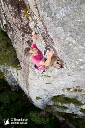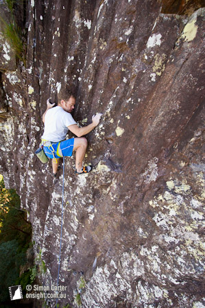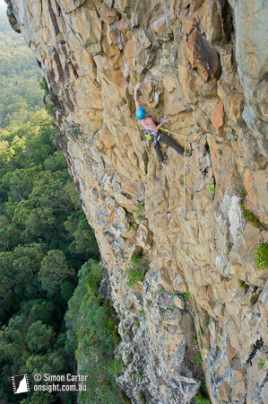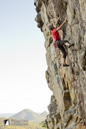 Nearby we jigged and poked our way two pitches up Mount Cooroora to get some shots of a stunning arête which John O’Brien (JJ) had established.