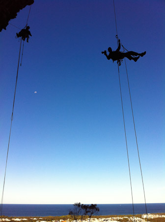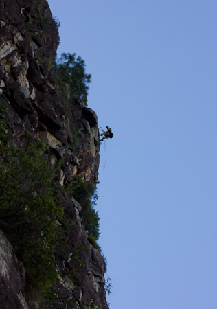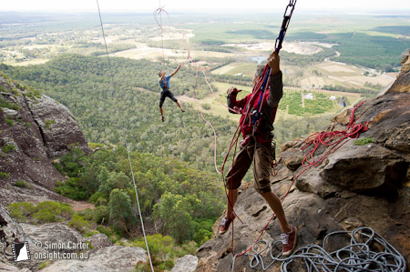 John J O’Brien got this shot of me abseiling into position for a shoot on Clemency Wall, Mount Tibrogargan.