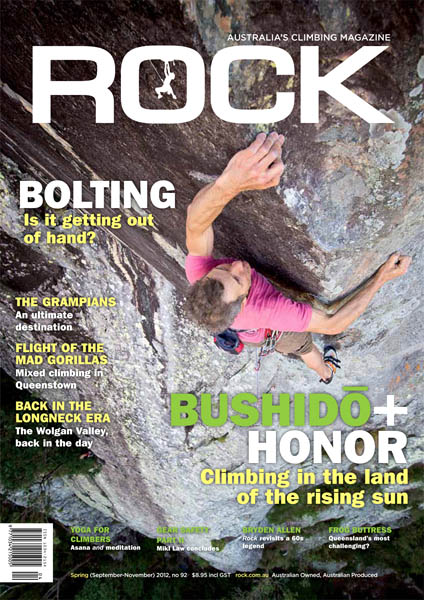Another Rock Magazine cover. This time it is from my trip to Queensland where I photographed John J O’Brien on his Ill Gotten Gains (26), an unlikely and very cool looking arete, two pitches up Mount Cooroora on the Sunshine Coast.