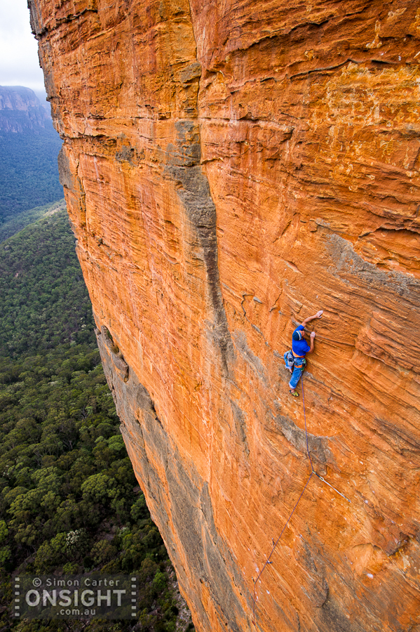 Vince Day on Wild Wild West (23) at Hanging Rock over looking the Grose Valley, Blue Mountains. Totally out there but it’s a rarely repeated route; access is involved. Fun times rigging the ropes to get this perspective (see the set up in the Nikon BTS vid on my web site). #climbing #rockclimbing #rockclimbingdownunder #bluemountains @sterlingrope #julbo @lasportivagram #nikon @nikon_australia @thinktankphoto