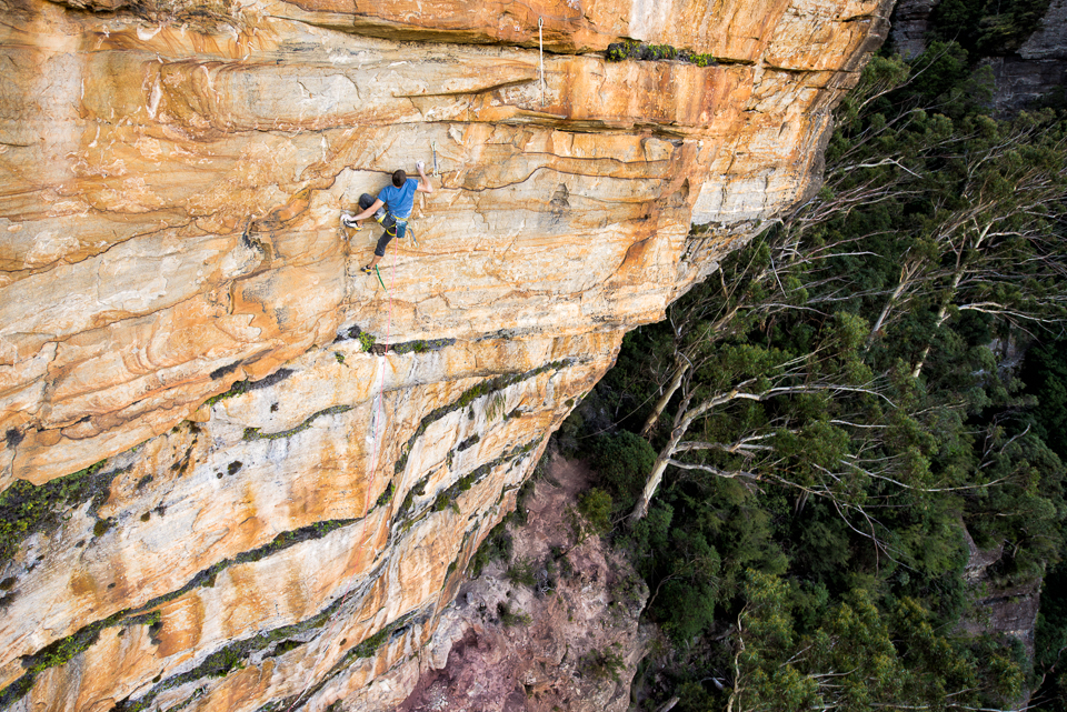 Congrats to Tom O’Halloran for last Thursday completing his Milkbar project at Elphinstone, in the Blue Mountains. I took this shot a few years ago when he first started trying the route. Later he climbed the route to the roof at grade 33, then on Thursday he completed the entire route — continuing through the final roof with a massive horizontal dyno — at grade 34.