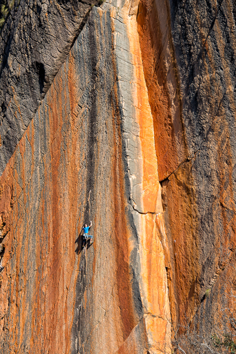 Lynn Hill leading Archimedes Principle (25) on Eureka Wall.