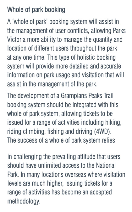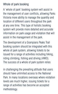 Now I’m not much into conspiracy theories but I’ll just put this out there anyway. And if in a few years Parks come back with a new management plan which includes a user-pays ticketing system, well, maybe you read it here first and you’ll know we were played. It would explain a lot. Anyway, it is relevant in some ways. The “it” is the Grampians Peaks Trail plan.