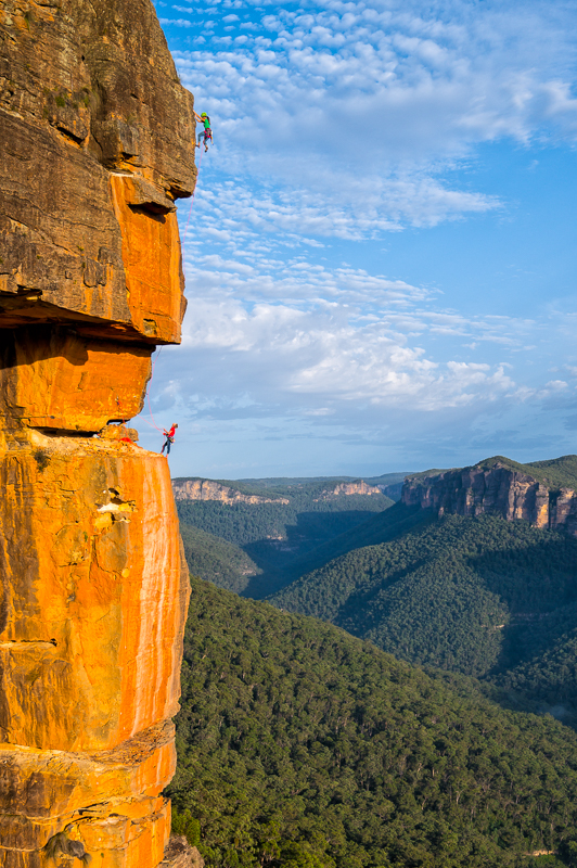 This is one of my favourite shots taken this year for the new Blue Mountains guidebook. A unique route in a unique position deserved some effort to find a good angle, though this still has potential and remains a bit of a work-in-progress for me.