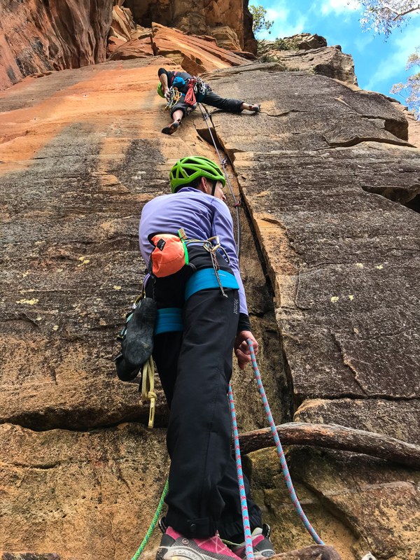 A rare shot of me climbing… @moniqueforestier and I have been doing some training with the Australian Climbing Instructors Association and have just sat – and passed – our Single Pitch Guide exam. Woohoo! I’ve been climbing for 36 years and there’s one thing I’ve learnt – never assume you know it all. As such, it was a delight to undergo an intensive learning experience with two super-skilled guides and fantastic teachers – Marty Beare and Adam Darragh. Thanks guys! Good times. The set ups and systems for safe single pitch guiding are unique, and so it doesn’t really matter how much climbing you’ve done, if you don’t know them, well, you don’t know. After all the training and then two-day assessment, well my brain was well fried. Not planning a switch of career into full time guiding, but should help with some things Monique and I might be doing with her coaching business @climbingaustralia. And who knows, might get us out of tight spot one day…. Props and respect to all the guides out there!