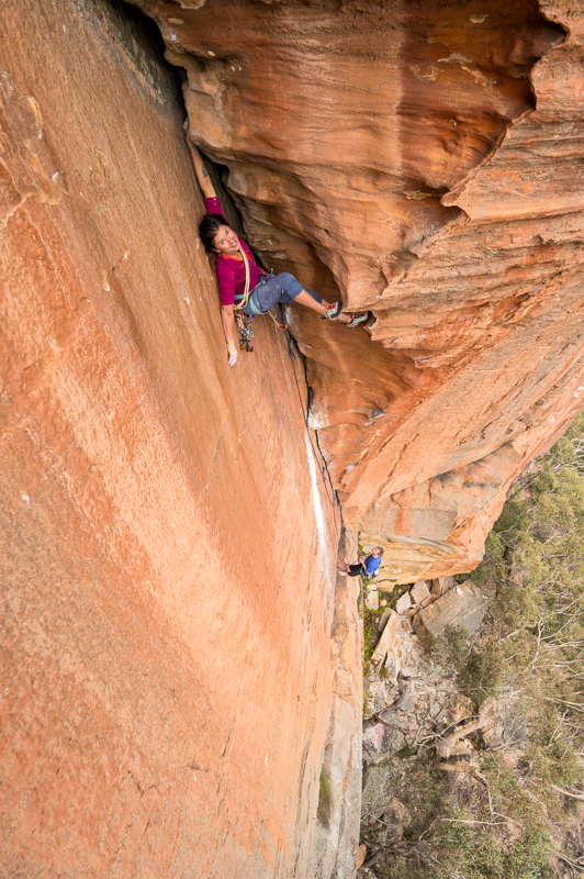It has been good getting after the shots again and catching up with the legend Brittany Griffith. Here she is thriving in the funky traddyness of Catch the Wind (21) at Engineer’s Cascade, Blue Mountains.