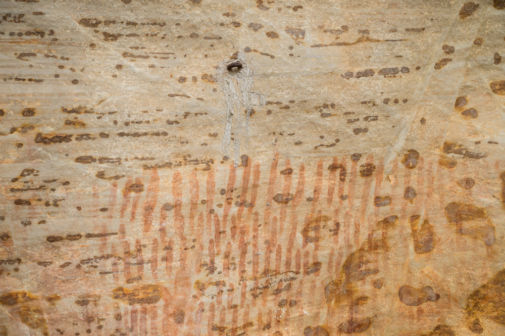 The graffiti was bad no doubt. The ‘A’ at the end of ‘Rebeka’ covers what appears to be a hand print. If climbers had done this, it would be BY FAR the worst thing climbers had done to rock art in the entire country. It’s terrible that it took a team of eight to clean it up (they did a good job though).