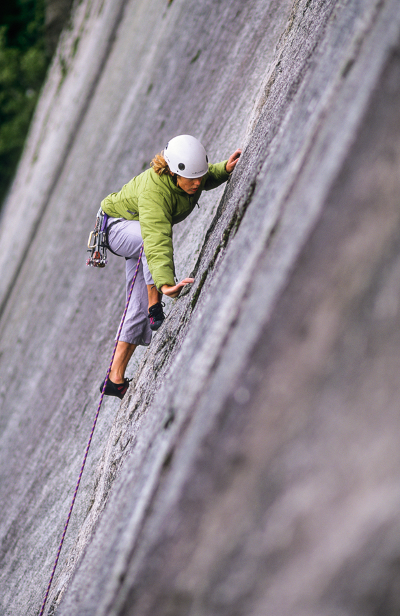 Abby Watkins leading pitch 4 (5.9), of the Grand Wall (10 pitches 5.11a) on the Stawamus Chief, Squamish, Canada.