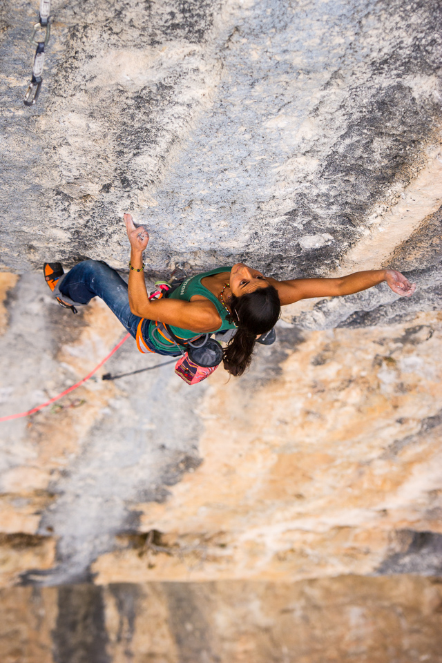 A little Spanish action. Daila Ojeda demonstrating Mind Control (8c+) at Oliana, in Catalunya. This was in 2012.