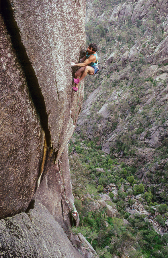 Malcolm Matheson on his Mussolini (28), North Wall, Mount Buffalo. Kirsty Hamilton belaying.⁠⠀