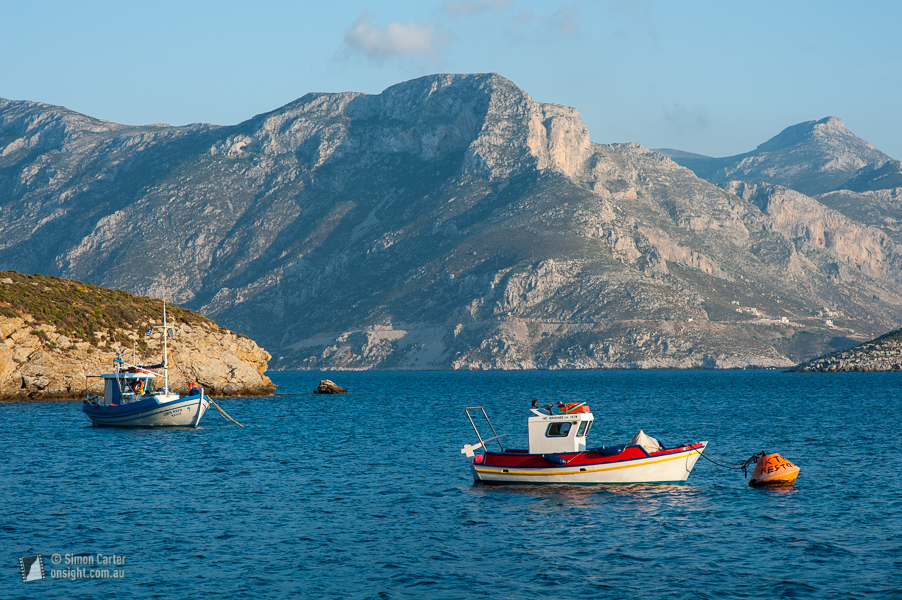 Kalymnos is the fifth largest and third most populous (population over 16,200) of the Dodecanese Islands (12 large islands and 150 smaller ones) which are situated in the Aegean Sea. Kalymnos is known as the “sponge divers island” due to the sponge diving trade which flourished up until the 1980’s where a virus affected the sponges and the diving declined. The capital, Pothia, is a vibrant port town offering supplies and is the transportation gateway to the other islands. Kalymnos is only 21km long and 13km wide and is covered by mountainous chains and rugged coastline.