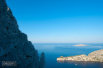 Nadine Rousselot leading the final pitch of the nine pitch traverse La Commune (6b) at Les Calanques, on the Mediterranean, in the south of France. The route actually starts from the rocky "beach" in the background!Text by Monique Forestier from World Climbing: Rock Odyssey