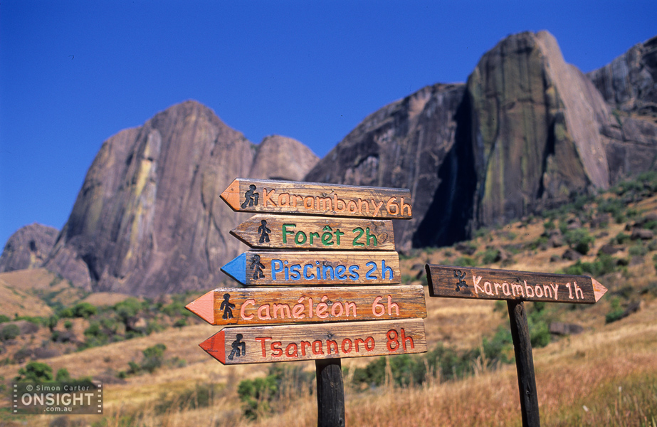 Tsaranoro: The place to stay at Tsaranoro is Camp Catta — www.campcatta.com. Be sure to book transfers and accommodation in advance. To get there from Antananarivo (Tana) it’s at least a full day travel to reach the town of Fianarantsoa (Fiana). Public taxi-brousse operate from Tana’s southern station (Gare Routiere du Sud) or, for a faster more reliable option, arrange a private taxi and settle on a rate before you leave. Contact Eric Mongou on (032.04.320.06 or 034.01.365.48) for a responsible driver. Note that Fiana is the last opportunity to buy supplies, otherwise you are totally reliant on the European-priced meals at the camp. Once you are at the camp you most likely won’t go back to Fiana so buy up big. From Fiana, it’s a three hour drive to Tsaranoro. It’s recommended to transfer with Camp Catta’s 4WD, it’s pricey but convenient and they have an office in Fiana. There are several accommodation options at the camp – stay in your own tent, one of the camp’s tents, bungalows (sleeps up to three people), or one of the mini chalets (sleeps up to 6 people). Either self-cater with food you’ve brought with you or enjoy meals in the camp’s restaurant, which although very expensive are appreciated after a big day on the wall.