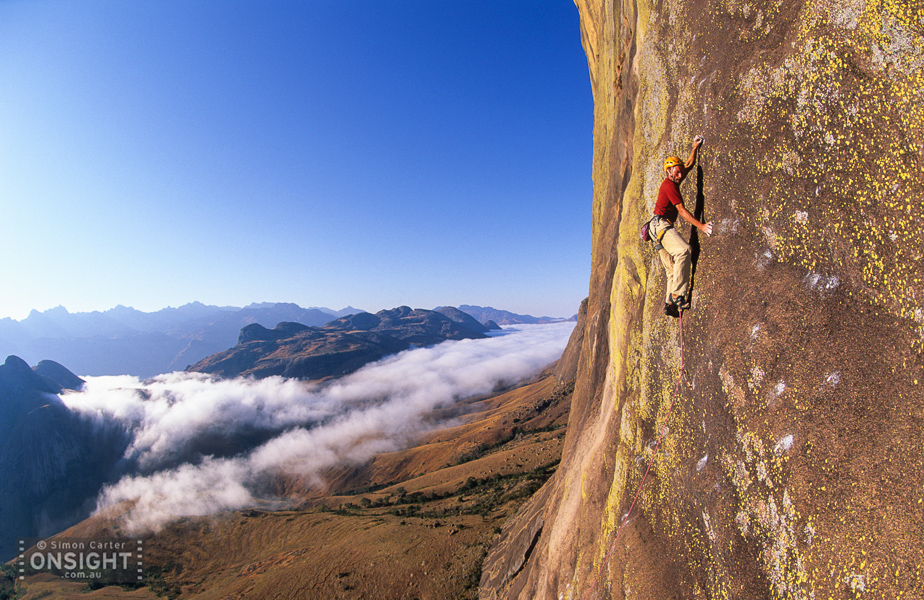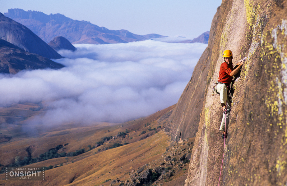 To get into the swing of things we select the ten-pitch Cas Nullard (6a) and bridge and smear our way up and over a series of massive runnels, much like changing trains on the subway, a heart-thumping introduction to Tsaranoro. Team Germany, comprised of Toni Lamprecht, Benno Wagner and Felix Frieder, have spent nine days equipping a new route called Manara-Potsiny (8a), bolting all 18 pitches ground-up, on lead, as is the ethic here, a visionary line. Through Felix Frieder, Benno Wagner and Toni Lamprecht on the belay for pitch 8 of their new route Manara-Potsiny (8a), 600m (18 pitches) on Tsaranoro Be, Tsaranoro, Madagascar.binoculars I watch Team Holland on the 17 pitch Gondwanaland (7c), one of the ultra-classics here. Another four-something-am start, sees Fred Moix and Simon on a mission to do Out of Africa (7a). With 14 sustained pitches blasting its way up the middle of Tsaranoro Be, this route is reason alone to visit this place.