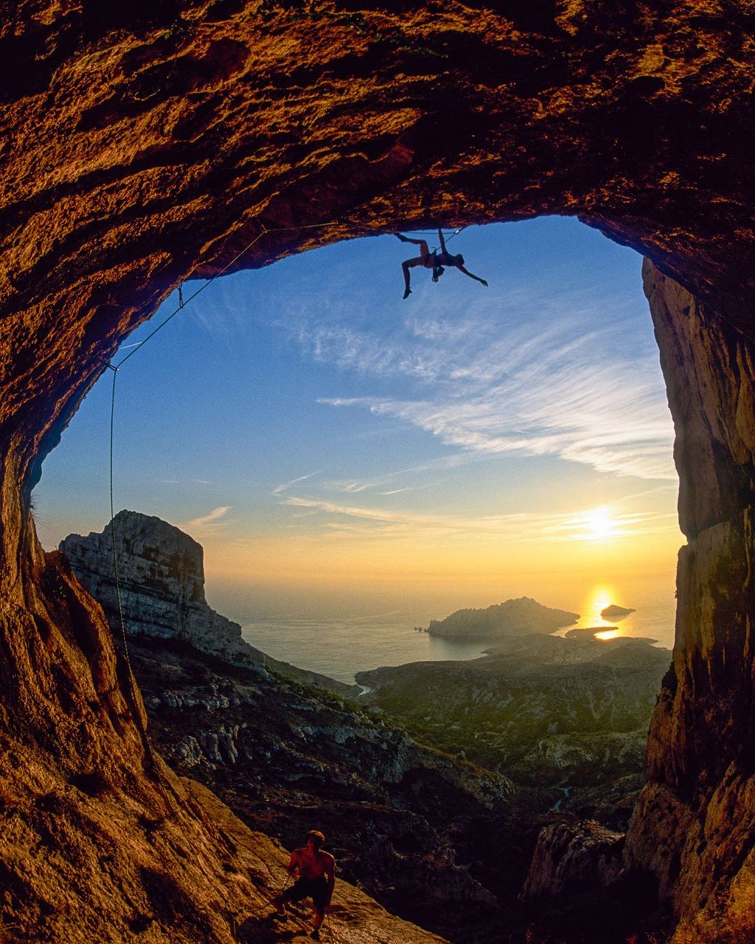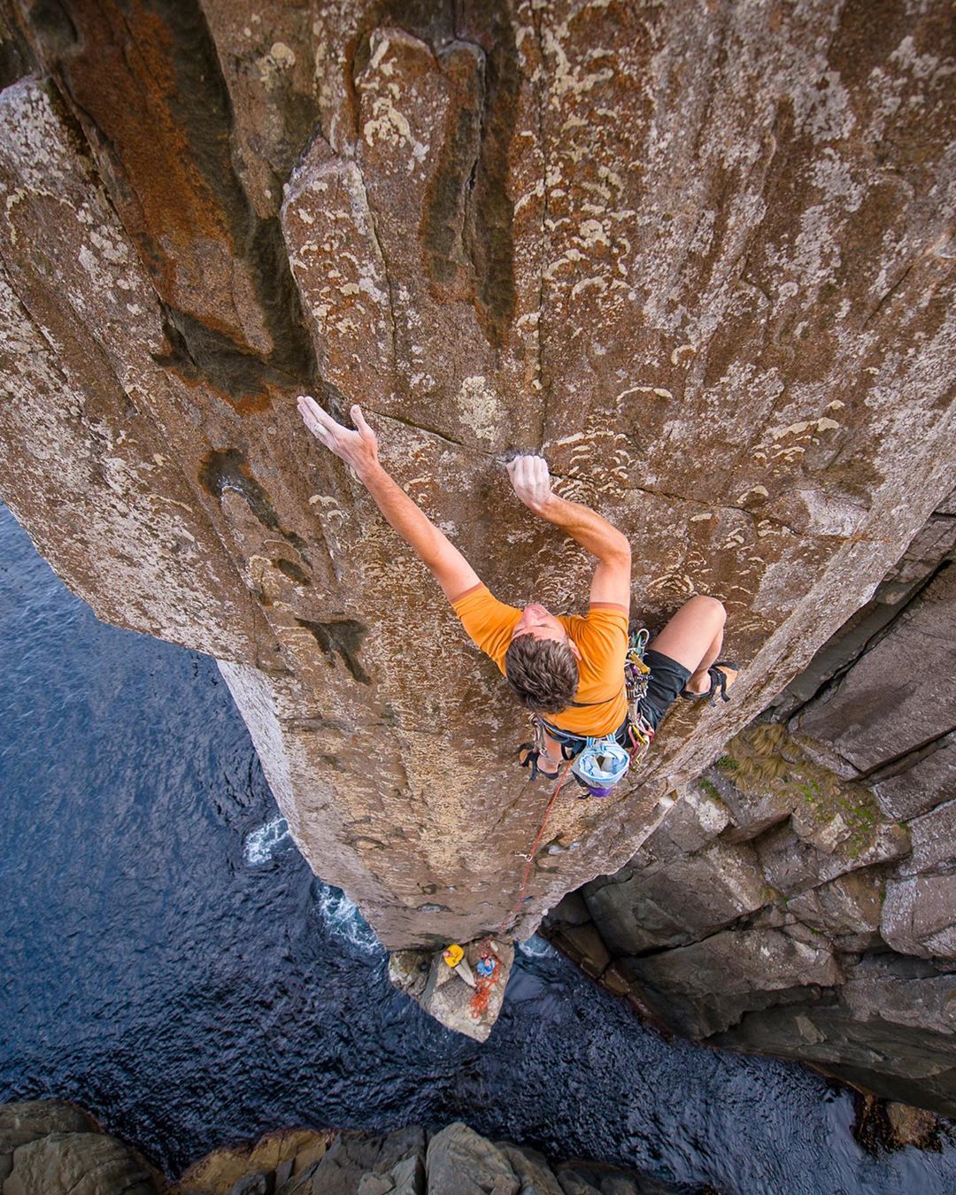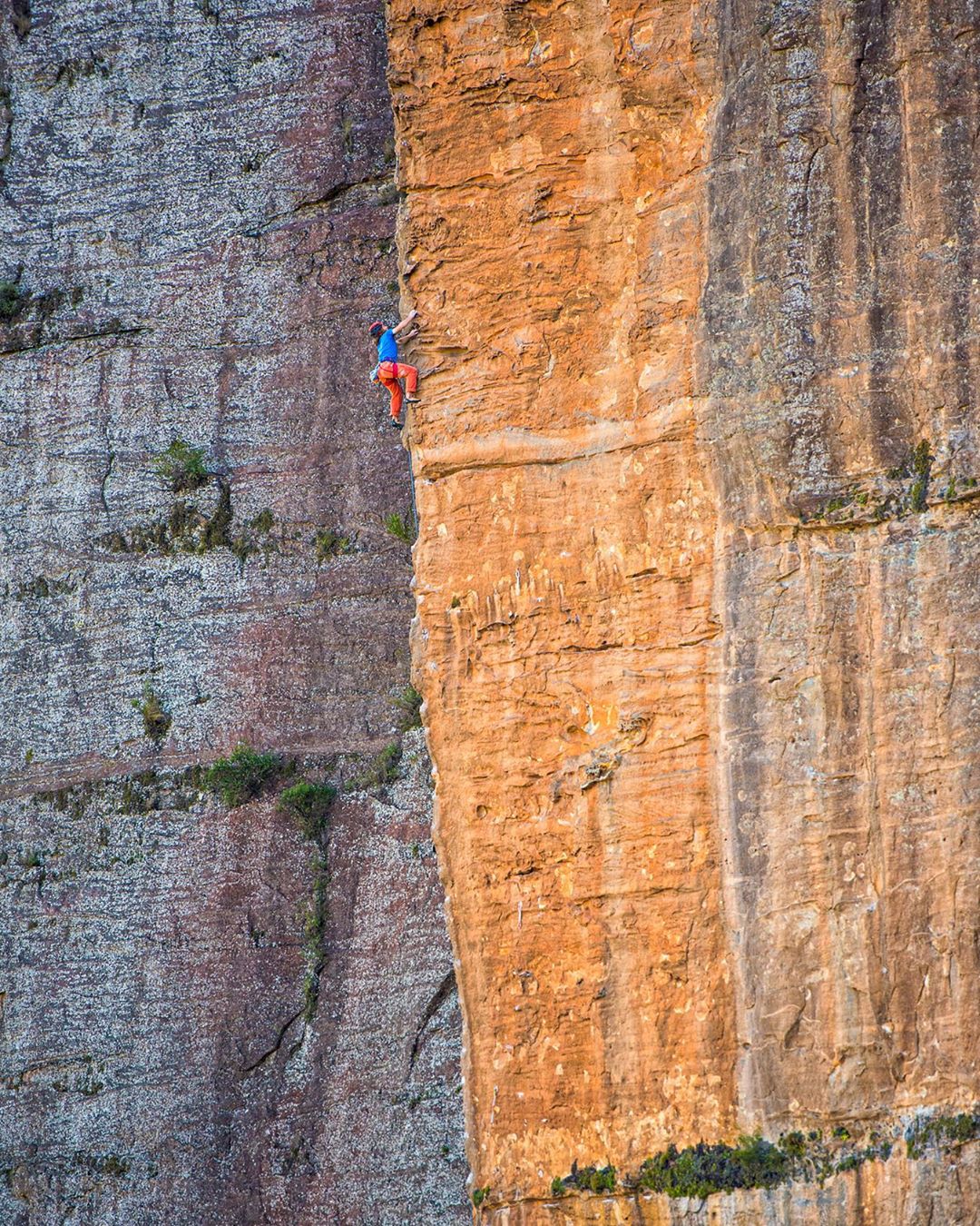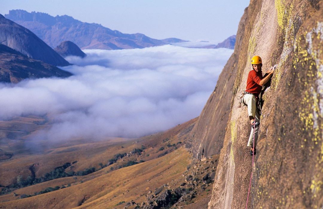 #throwback’s it is then. Here’s cheers to the days of travelling to far off and exotic lands and early starts to catch inversions on big walls. Felix Frieder leading pitch…