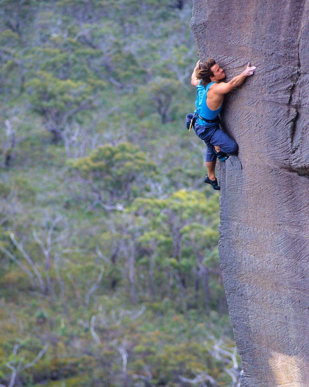 A throwback to a far more innocent time... David Jones on his route One Bed To The Left (27), on Cliché Wall in The Grampians, back