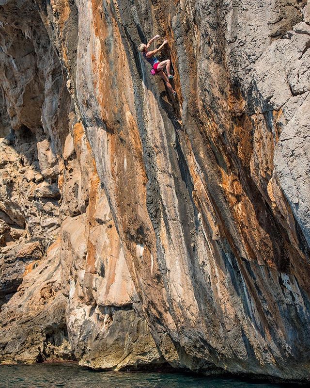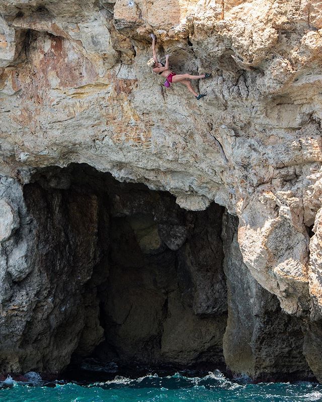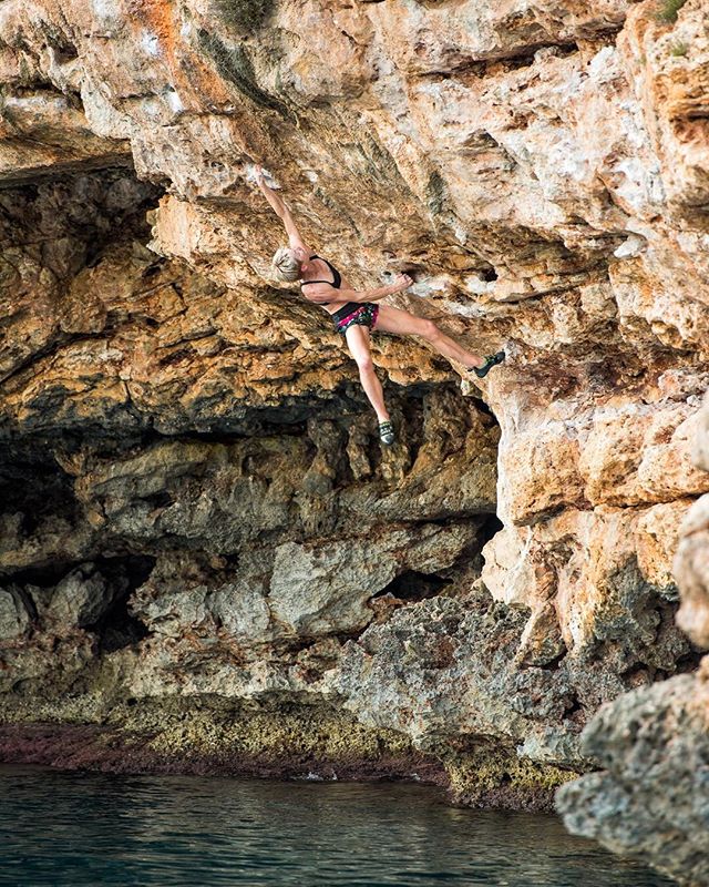 This is @moniqueforestier on a beautiful 7a at Cala Mitjana in Mallorca. Was really psyched to do this one