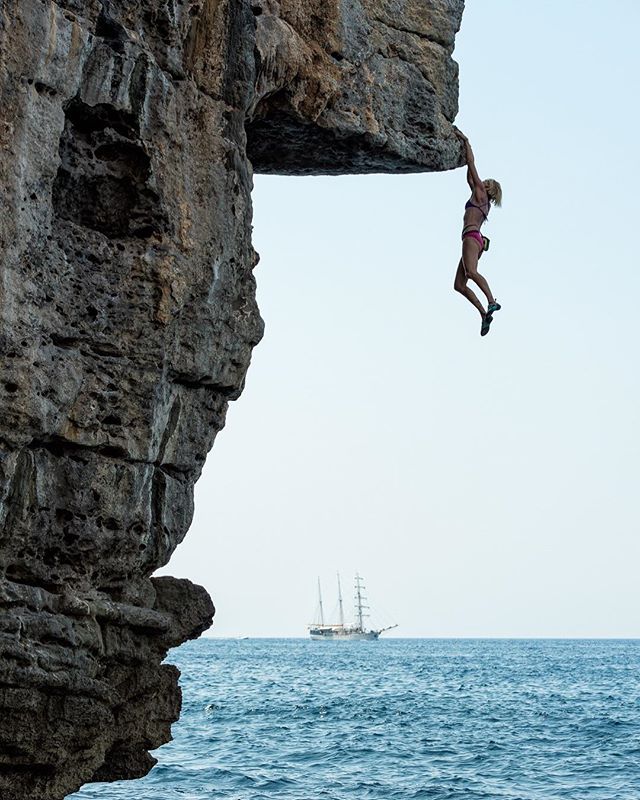 @kerstin_helbach_mallorca showing us how it's done, styling a 7b+ at Cala Serena on the east coast of Mallorca. . . .