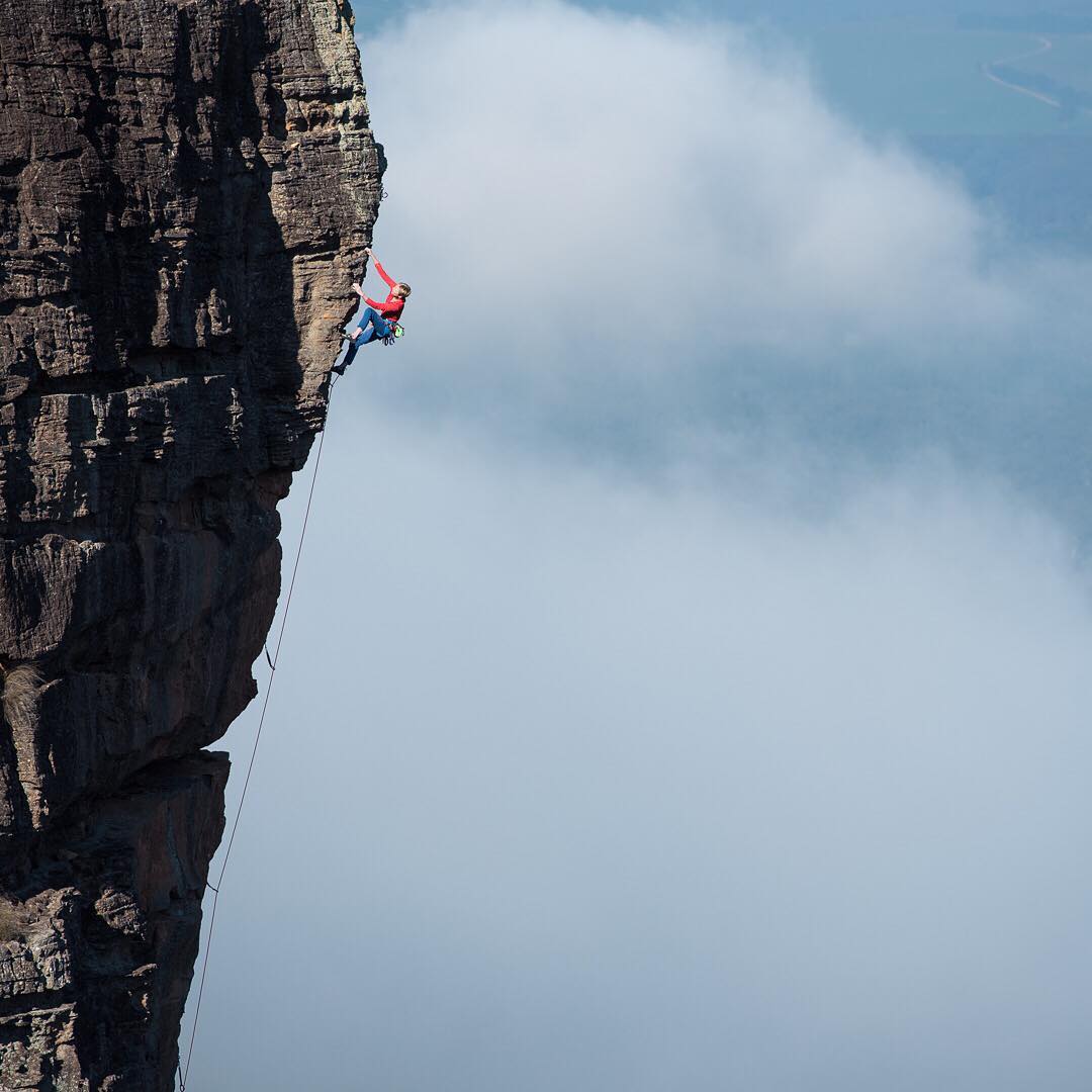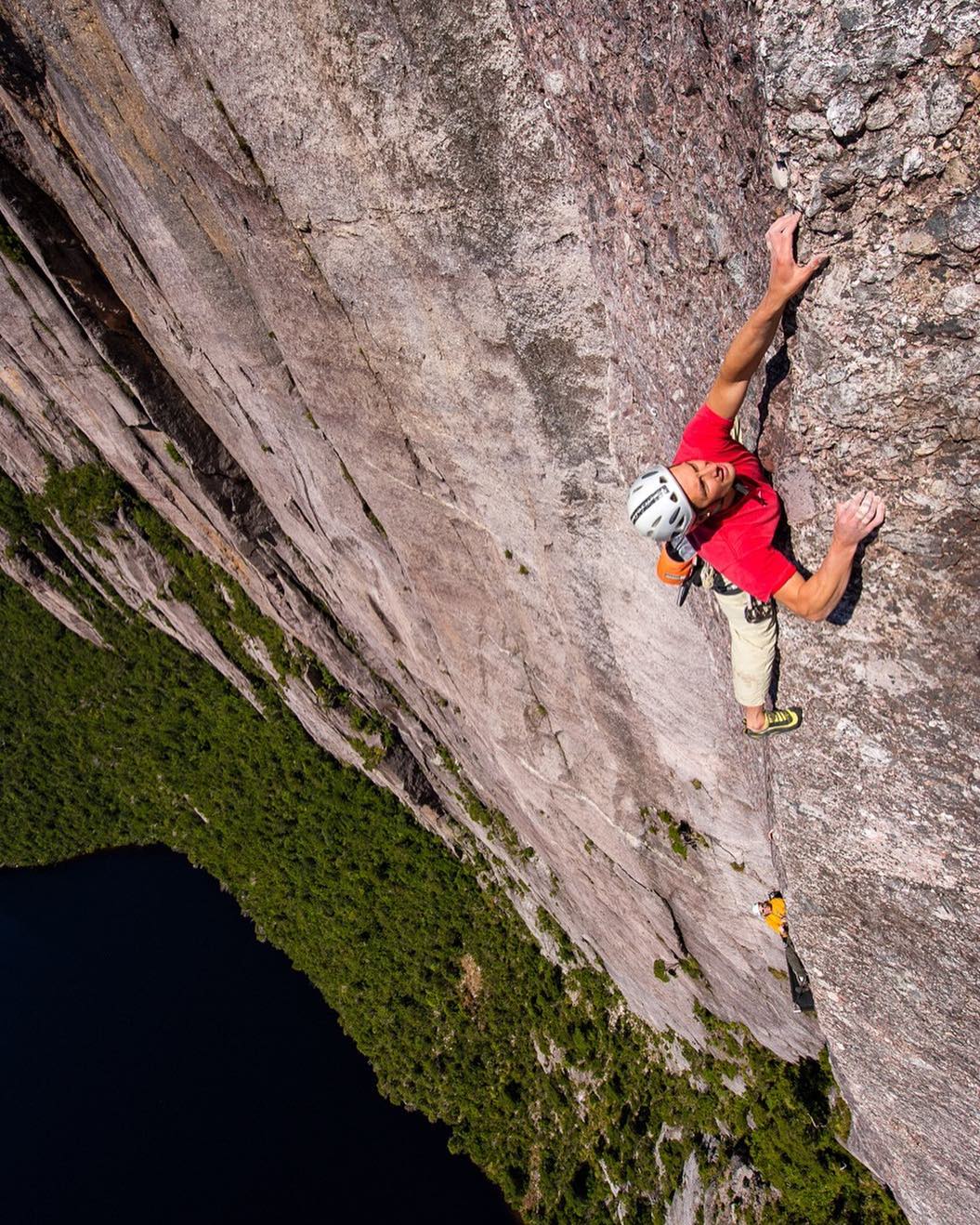 Jake Bresneshan with Garry Phillips belaying, on pitch four of a mega route that they established a few years back. It's called Live the Life (pitches are 21,28,27,27,26 and 25)