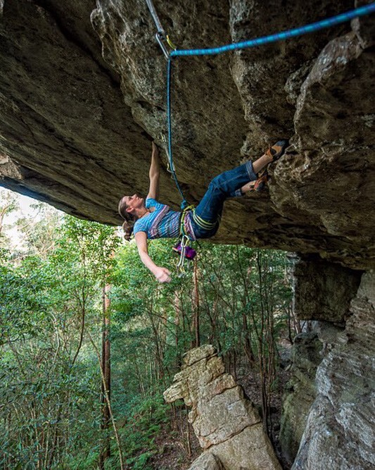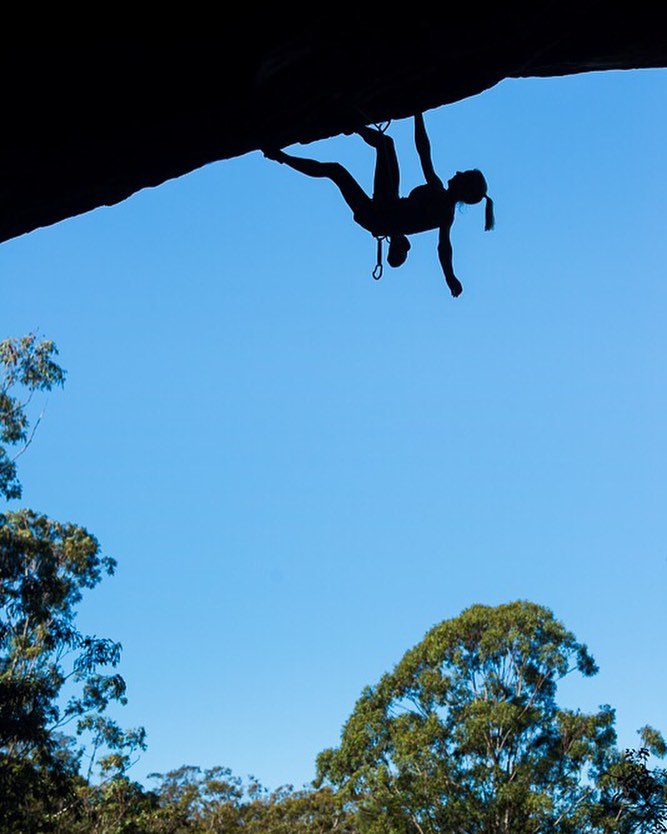 Carlie LeBreton all at home warming up in the house of power and steep stuff this morning. The route is Gas Krankinstation (24), an awesome 10m roof at Cheesedale, #Nowra.