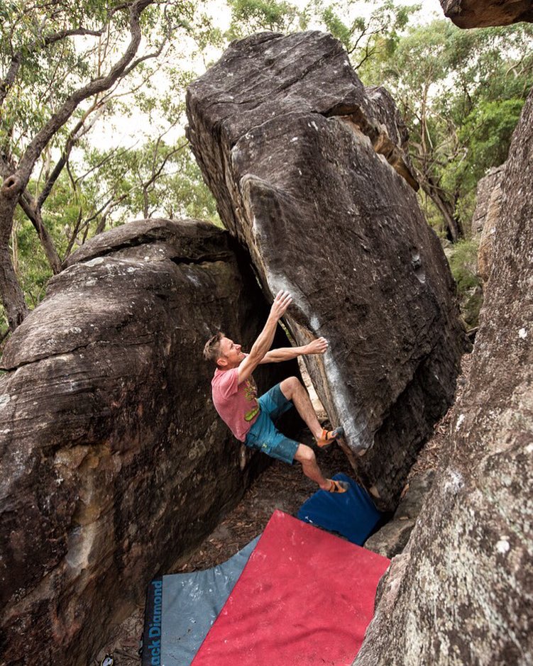 Well, that was different! Fun day at the #Balkans today. And this is #legend @roblebreton applying his magic touch to battle through The Pincer Movement (V5). #bouldering #Sydney