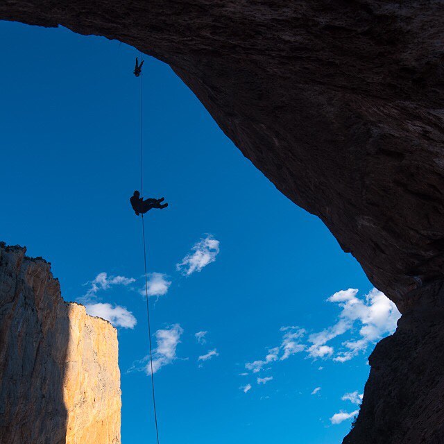 Adventure was promised and #adventure was had. Chris Sharma @chris_sharma and Klemen Becan @kbecan25 descend after a trying days work on Chris' mega multi-pitch project. Fortunately the mornings ballistic winds...