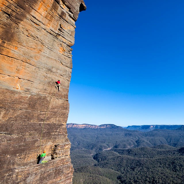 The Australian sun can be harsh, so we waited until winter (August in fact) for this one. Neil Monteith with Matt Brooks belaying, pitch two The Sublime and the Beautiful…