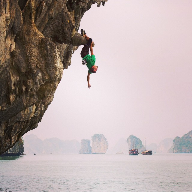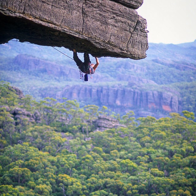 Great moments in #RockClimbingDownUnder ... The one and only Malcolm (HB) Matheson pulling through the 6 meter downward sloping roof that is pitch 2 of Passport to Insanity (27) in…