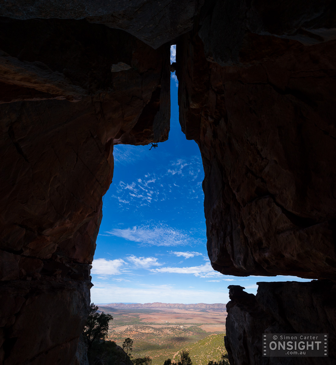 Simon Wilson attempting Buzzard Arête (25), Moonarie, South Australia.