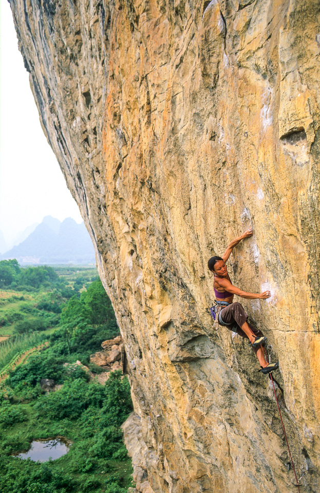 Olivia Hsu, Devil Sticks (5.12b), White Mountain, near Yangshuo, China.