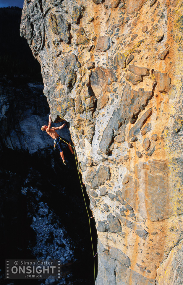 Hans Florine, Fun Terminal (5.12a), Killer Pillar, Yosemite, California, USA.