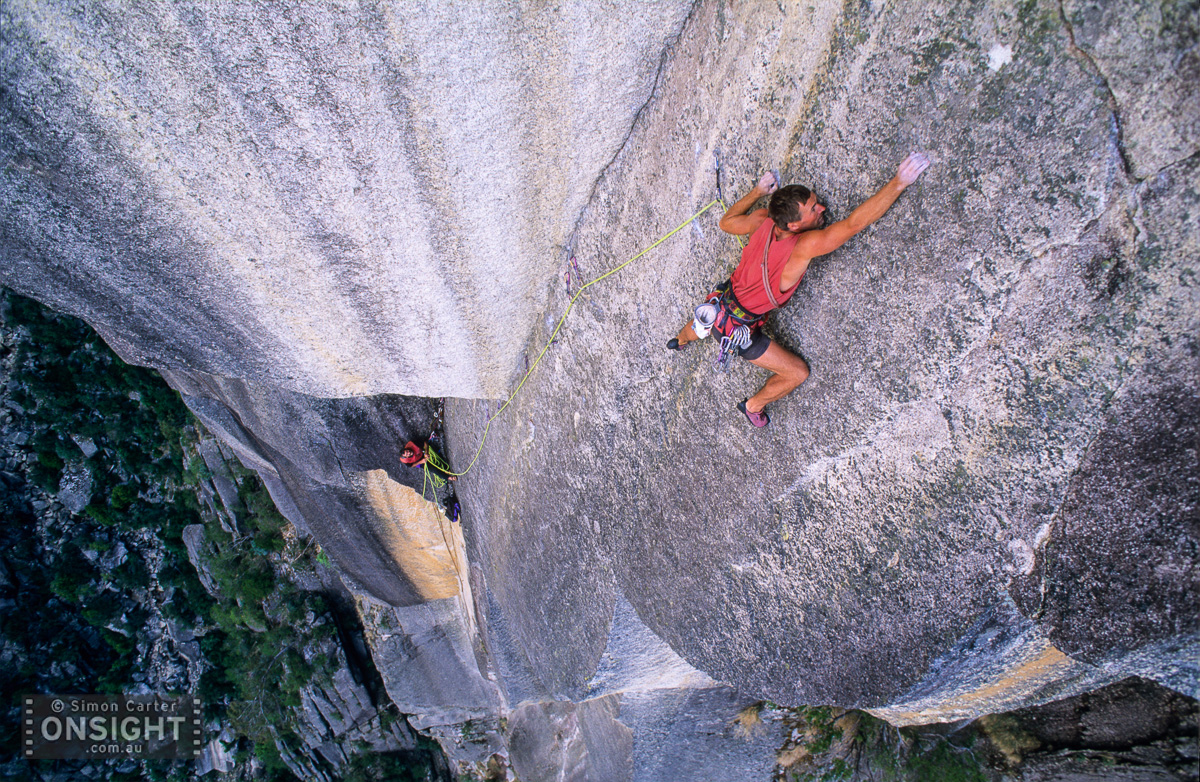 Steve Monks, pitch eight of Holden Caulfield (27), high on the North Wall, Mount Buffalo, Victoria, Australia.