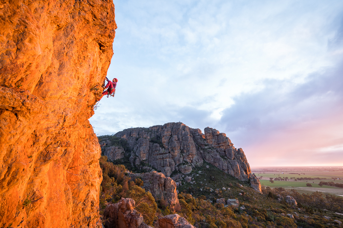 Tzvia Iljon climbing Jen’s Roof (18) at Mount Arapiles, Victoria.