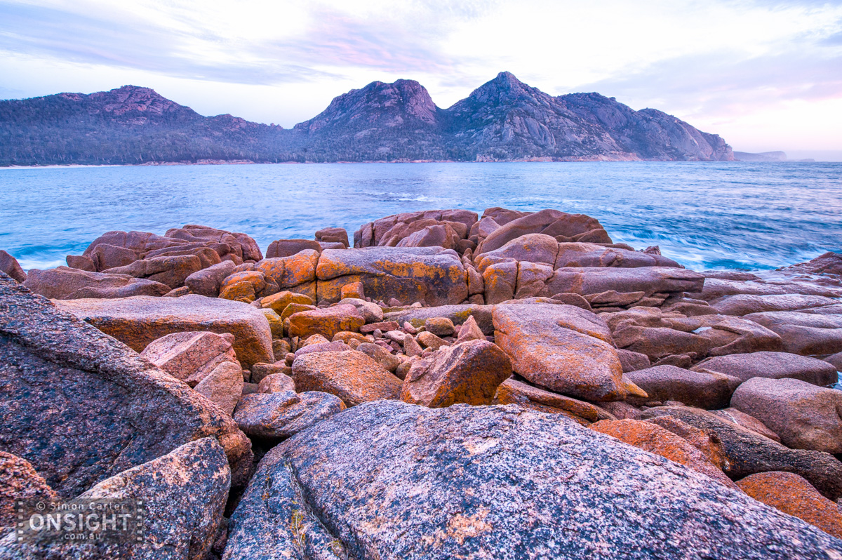 The Hazards range on Freycinet Peninsula, seen from near thre end of Wineglass Bay, Freycinet Peninsula, Tasmania, Australia.