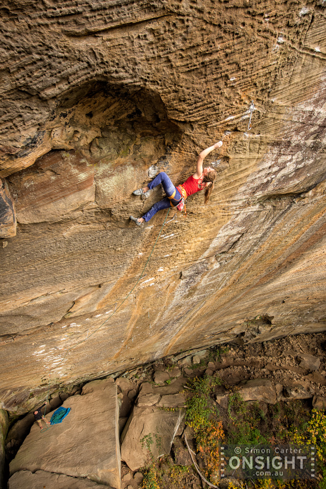 Tina Hafsaas, Pure Imagination (5.14c), Chocolate Factory, Red River Gorge, Kentucky, USA.