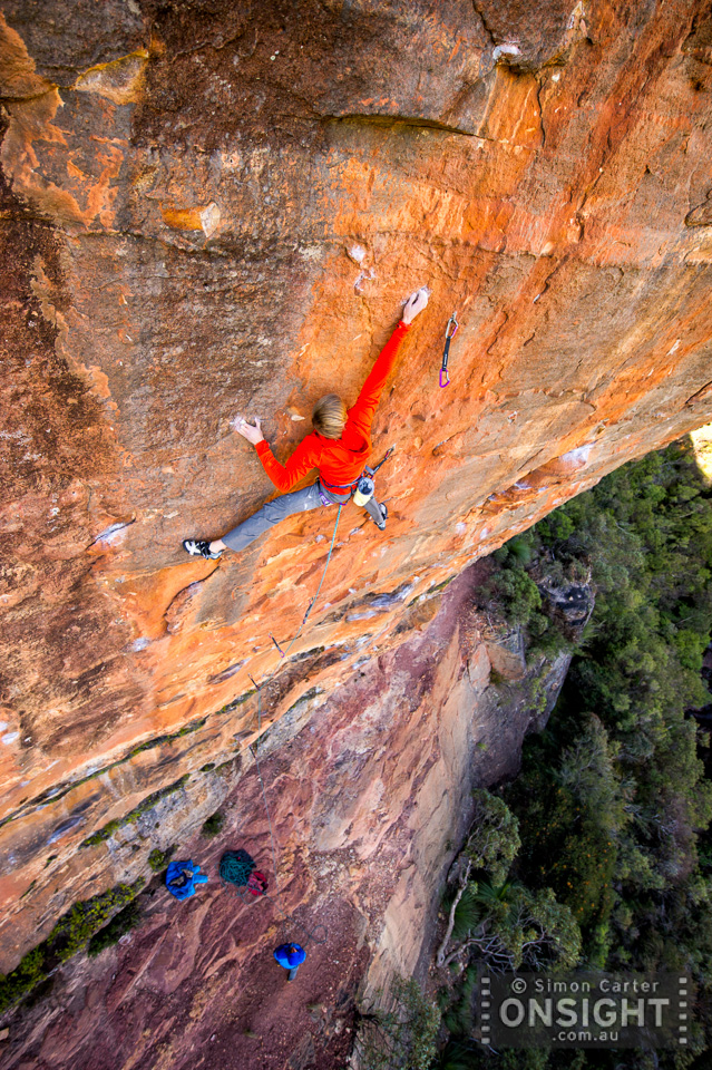 Alexander Megos, Retired Extremely Dangerous aka The Red Project, at Diamond Falls in the Blue Mountains. The first grade 35 (9a) route in Australia.