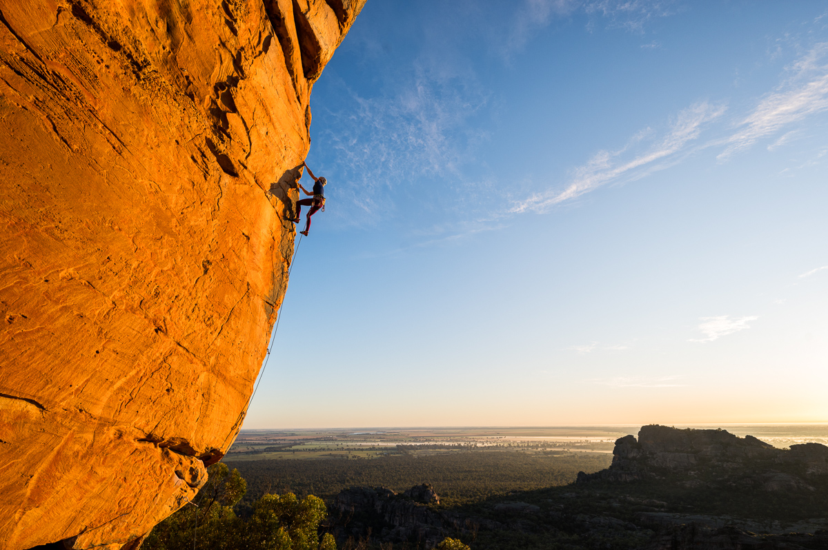Ashlee Hendy, Wheels of Steel (27) at Koalasquatsy Crag in the Grampians, Victoria, Australia.